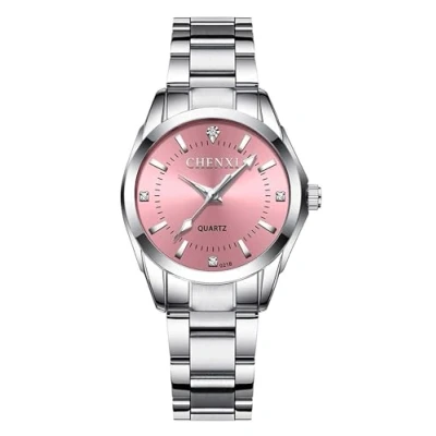 Gosasa Women Classic Fashion Watch Casual Business Quartz Stainless Steel Waterproof Luminous Dress Silver Watches, B Pink,
