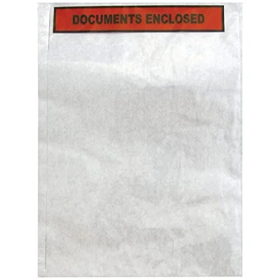 Self-adhesive wallet for documents With Documents Enclosed text Ideal for supplying invoices and receipts With packages Size: A4 (245x328mm) Part Number:4301004