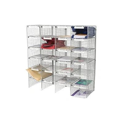Versatile mail sorter unit Lightweight yet robust frame Additional columns can be easily clipped on for extra capacity Adjustable shelf positions 24 compartments Weight capacity per unit: 120kg Size: W1067xD381xH1067mm Colour: Grey