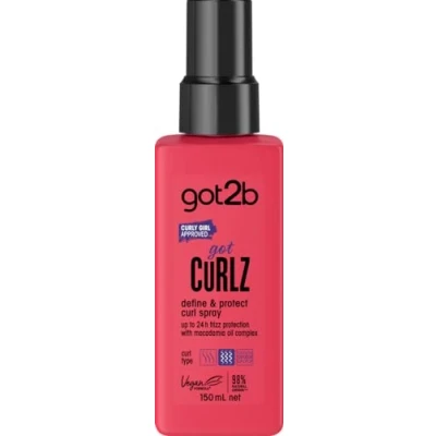 Define & Protect Curl Spray: This got2b Define & Protect Curl Spray defines curls and provides frizz protection for up to 24 hours Caring: The unique formula with Coconut Milk Extract and Macadamia Oil Complex provides a soft hair feeling Co-created: The gotcurlz range has been co-created with curly heads for curly heads. Not to tame curls, but to embrace them Curly girl approved: This curl spray has been developed in accordance with the Curly Girl Method. Vegan formula* & 98% naturally derived ingredients** Package contents: Schwarzkopf got2b gotcurlz Define & Protect Curl Spray 150 ml, defines curls & protects against frizz for up to 24 hours, with coconut milk & macadamia oil, vegan formula*