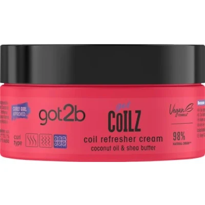 Got2b, Vegan, Curl and Coil Refresher Hair Cream, Infused with Coconut Oil, Castor Argan Oil Shea Butter, Enhancing, 200ml