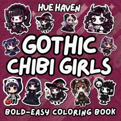 Gothic Chibi Girls: Bold and Easy Coloring Book for Kids Adults Simple Stress Relief Designs of Cute Kawaii Anime Goth Girls.