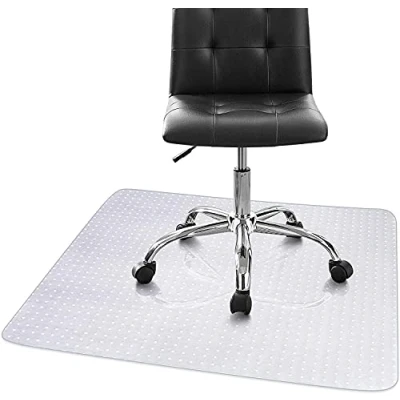 Transparent Chair Mat : This rectangular office mat for chair adopts transparent design Transparent design without affecting home or office decor,it can extend the service life of the carpet without reducing its quality. Carpets Protector : The size of this floor carpet protector is 35.4 * 47.2 inches. The floor protector mat protects your carpets against all spills and marks caused by chairs, coffee tables, side cabinets and even computer desks PVC Material : The chair mats is made of high quality thick PVC material material, Odourless, dirt-resistant and sound absorption, Eco-friendly clear chair mat is easy to maintain, simply clean the pad with warm soapy water Application : This large anti slip floor cover is ideal for protecting carpets and floor from wear and tear; The multi-purpose chair mat has a wide variety of uses in the office and home, such as desk areas, reception areas, high foot traffic hallways, waste bin areas Non Slip Stud Bottom : This chair mats features a non slip base which keeps he mat firmly in place,it design designed for use on all hard floor surfaces such as tiles, laminates, hardwood, etc