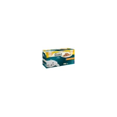 GOURMET Perle Adult Cat Mini Fillets in Gravy Chefs Collection Value Pack (Turkey Tuna Duck Lamb) Wet Cat food 60x85g. Connoisseurs can be fussy eaters and tempting recipes can be difficult to find. GOURMET Perle offers an elegant range of delicate recipes to tickle your senses with an irresistible taste experience every day. Yielding to temptation will be a sheer pleasure. INGREDIENTS Meat and animal derivatives (min 4% duck/turkey/lamb) vegetable protein extracts fish and fish derivatives (of which tuna min 4%) molluscs and crustaceans (whole shrimp min 4%) minerals various sugars. ANALYTICAL CONTENT Moisture: 80 0%; Crude protein: 14 0%; Crude oil: 2 5%; Crude ash: 2 2%; Crude fibre: 0 5%. FEEDING GUIDE For an average adult cat (4kg) feed 3 to 4 pouches per day in at least 2 separate meals. The adult maintenance averages are based on moderately active cats at normal environmental temperatures. Individual needs vary and feeding should be adjusted as required to maintain your cat at
