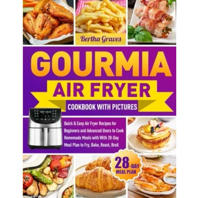 Gourmia Air Fryer Cookbook With Pictures: Quick & Easy Recipes for Beginners and Advanced Users to Cook Homemade Meals 28 Day Meal Plan Fry, Bake, Roast, Broil