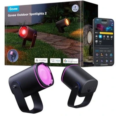 Govee Outdoor Spotlight, Waterproof Garden Lights, RGBWIC LED Dimmable 700lm with 69 Scene Modes and 16 Million Colors for Patio, Works Alexa, Google Assistant, Matter. 2 Pack