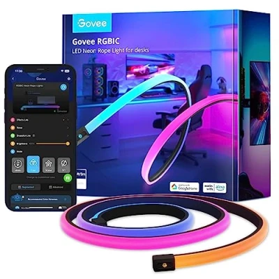 Govee RGBIC Gaming Lights, 3M Neon Rope Lights Soft Lighting for Desk, LED Strip Syncing with Razer Chroma, Smart App Control, Support Cutting, Music Sync, Adapter (Only 2.4G Wi Fi)