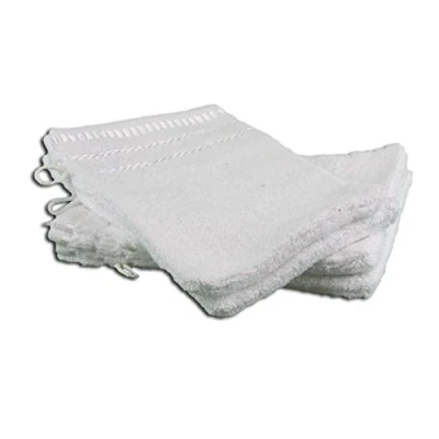 Very fluffy wash mitt set (17 x 24 cm) in white for soaping and washing off face and body, suitable for any modern bathroom Soft surface thanks to 100% combed ring yarn cotton, high absorbency thanks to dense base fabric (470 g/m²), elegant viscose strip on the hem and as a border, optimal attachment thanks to sewn-in hanger Perfect combination of different colours and models of the Berlin terry towel series – wash mitt, soap, guest, hand and shower towel Durable thanks to special corner sealing, skin-friendly and lint-free, tested for harmful substances – Oeko-Tex Standard 100, easy-care: washable at 60°C, tumble dryer-safe Box contents: 1 Gözze set of 4 washing mitts, series: Berlin, dimensions: 17 x 24 cm, colour: white