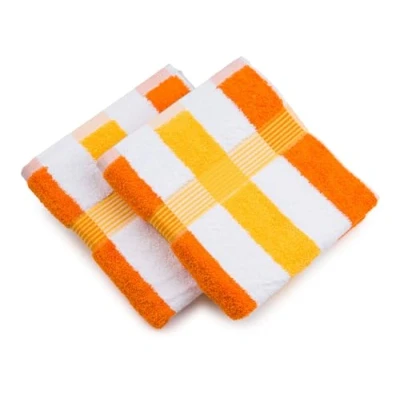Very soft towel set (50x100 cm) with orange, white and yellow stripes, For drying face and hands, Suitable for every modern bathroom Soft to the touch surface thanks to 100% cotton, High absorbency thanks to dense base fabric (550 g/m²), Elegant striped woven border, Optimum fastening thanks to sewn-in hanging loop Perfect combination of different Colours and models of the New York terry towel series - wash glove, washing cloth, guest, hand, bath and bath towel Durable thanks to special corner sealing, Skin-friendly and lint-free, Tested for harmful substances - Öko-Tex Standard 100, Easy-care: Washable at 60°c, Suitable for tumble dryer Contents: 1 Gözze set of 2 towels, series: New York stripes, Dimensions: 50x100 cm, Colour: Orange/White/yellow, 555-8450-A4