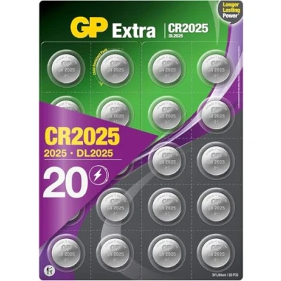 CR2025 Battery 3V Lithium GP Batteries Extra Alkaline Pack of 20 comes in letter box friendly packaging, so there’s no need to wait in for delivery. The shelf life of these batteries is up to 7 years. These CR2025 Batteries are replaceable by or are also known as: CR 2025 Batteries - DL2025 Batteries – ECR2025 Batteries - KCR2025 Batteries and 2025 Batteries. Suitable for every day use in a variety of devices. Ideal for electronical toys, remote controls, 3D Glasses, Bike Lights, Watches, Heartbeat Monitors, Scales, Toys, Led Lights, Head Light, Torches, Car Keys, Calculators, Remote Controls, Dog Collars, Kitchen Scales, Led Candles, Laser pointer, E-Readers The Extra technology means greater efficiency and longer battery life than other CR2025 or 2025 battery brands. New technological innovations mean that this battery size continues to be in demand for both new and old home devices. Meets all safety and environmental regulation. This pack is developed to be letter box friendly, so there’s no need to wait for delivery of this single item. GP Batteries are world renowned for their battery expertise, with over 50 years of manufacturing heritage. More than just a brand, GP Batteries pride themselves in delivering top-quality products, taking every measure to ensure the safety of your device.