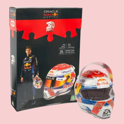 Imagine piecing together a mini masterpiece that roars with the energy of the racetrack. This 3D puzzle brings the thrill of Red Bull Racing directly to your fingertips, crafted from 55 brilliantly detailed pieces that snap together without a hitch – no glue, no fuss. It's not just a puzzle; it's a chance to build a vibrant tribute to Verstappen's helmet, bursting with official team branding and vivid colours that shout motorsport passion. The clever design combines sturdy cardboard, cushy EPS foam, and a slick coated finish, resulting in a solid final piece that’s as striking as it is resilient. Whether you’re a motorsport aficionado or a fan of well-made collectibles, this puzzle invites you to create a unique display that’s both a challenge and a trophy. The build suits puzzlers of all ages, making it a lively, interactive experience that fits comfortably in living rooms, offices, or even on prized shelves. Once assembled, the vibrant Red Bull helmet stands out with its sleek, compact shape – a dynamic nod to Formula 1’s fast lane, adding racing spirit to your space. It’s more than just a puzzle; it’s a showpiece of speed and style that lets you own a piece of the track’s excitement, flaunting your fandom with genuine heritage and a playful edge.
