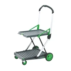 Transports goods quickly and efficiently. Rubber wheels for easy transportation. Capacity: 20kg (Top), 40kg (Bottom). Collapses down for space saving storage. Comes with detachable folding box for additional storage. Dimensions: 550x890x1030mm (WxDxH).