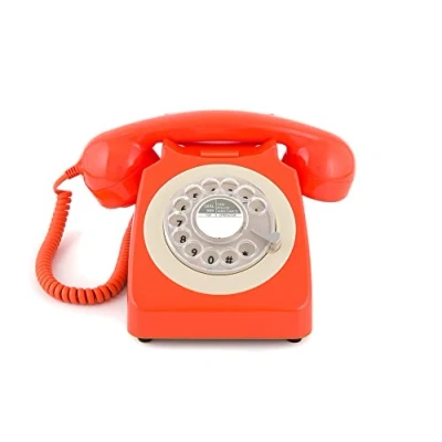 GPO 746 Rotary 1970s Style Retro Landline Telephone, Classic Telephone with Ringer On/Off Switch, Curly Cord, Authentic Bell Ring for Home, Hotels Orange