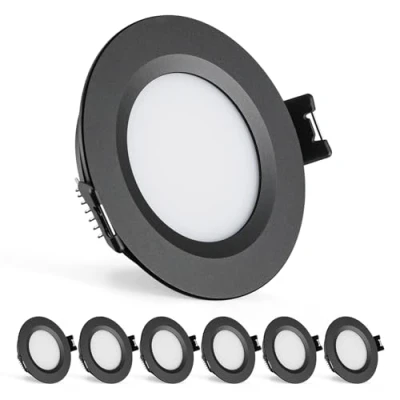 Gr4tec LED Recessed Spotlight 12 V Black, 6 x 3 W Extra Flat 3000 K Warm White, IP44 Ceiling Light mm for Motorhome, Boat, Caravan, Hole 58 62