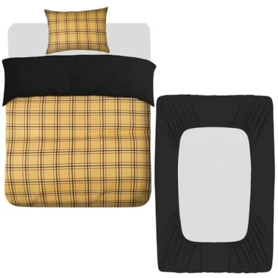 Amazon 𝗣𝗿𝗲𝗺𝗶𝘂𝗺 𝗤𝘂𝗮𝗹𝗶𝘁𝘆 𝗠𝗶𝗰𝗿𝗼𝗳𝗶𝗯𝗲𝗿: The Grace single duvet cover set is made from top-grade microfiber, offering an incredibly soft feel with a double-brushed finish on both sides. Lightweight and breathable for a cool, smooth, and indulgent sleeping experience. 𝟯 𝗣𝗰𝘀 𝗕𝗲𝗱𝗱𝗶𝗻𝗴 𝗦𝗲𝘁 𝗜𝗻𝗰𝗹𝘂𝗱𝗲𝘀: 1 x single duvet cover (135 x 200 cm) + 1 x standard size matching reversible pillow cases (50 cm x 75 cm) + 1 x 40cm extra deep pocket black single fitted sheet (90 x 190 cm). 𝗦𝗵𝗿𝗶𝗻𝗸 𝗮𝗻𝗱 𝗙𝗮𝗱𝗲 𝗥𝗲𝘀𝗶𝘀𝘁𝗮𝗻𝘁: Expertly crafted to withstand shrinking and fading, ensuring long-lasting color retention wash after wash, providing you with a reliable and vibrant bedding solution. 𝗘𝘅𝗰𝗲𝗽𝘁𝗶𝗼𝗻𝗮𝗹 𝗤𝘂𝗮𝗹𝗶𝘁𝘆 & 𝗗𝘂𝗿𝗮𝗯𝗶𝗹𝗶𝘁𝘆: Crafted with precision, our single bedding set maintains high comfort and smoothness. Sturdy construction ensures vibrant colors and a soft texture that withstands repeated washes, keeping the set stylish for years. 𝗢𝗲𝗸𝗼-𝗧𝗲𝘅 𝗖𝗲𝗿𝘁𝗶𝗳𝗶𝗲𝗱: The Grace single duvet cover is certified free from harmful chemicals. This reflects our commitment to environmental protection and high production standards, making it a safe, sustainable, and healthy choice for your home. 𝗘𝗮𝘀𝘆 𝗖𝗮𝗿𝗲 𝗮𝗻𝗱 𝗠𝗮𝗶𝗻𝘁𝗲𝗻𝗮𝗻𝗰𝗲: Our single duvet cover set is machine washable and built to withstand regular laundering. Quality construction ensures it retains softness, durability, and overall feel, making it a long-lasting addition to your bedding collection.