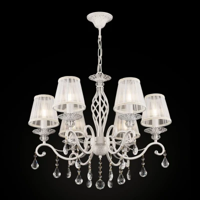 Net LightingMetal frame, White with Gold finish. Pleated white organza lampshades. Crystal pendants.