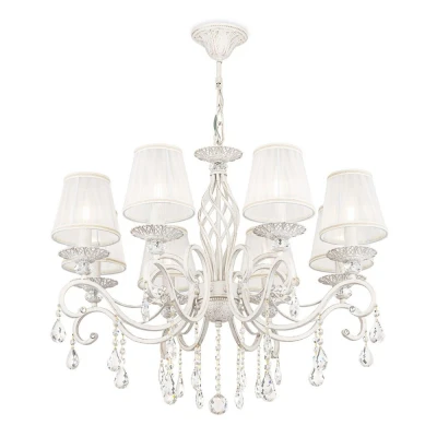 Grace Chandelier White with Gold & Crystal, Shades, 8 Light, E14