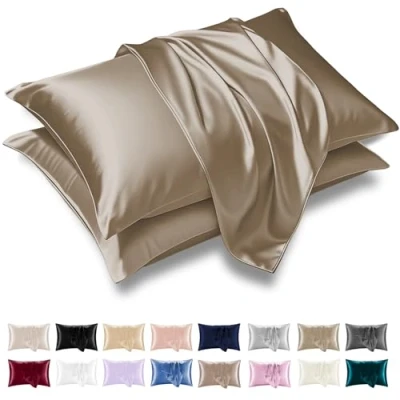 Amazon ๐๐ซ๐ž๐ฆ๐ข๐ฎ๐ฆ ๐๐ฎ๐š๐ฅ๐ข๐ญ๐ฒ: Grace satin silk pillowcases 2 Pack (50 x 75 cm) crafted from luxurious satin fabric for superior comfort, smoothness, and durability. ๐’๐š๐ญ๐ข๐ง ๐’๐ข๐ฅ๐ค ๐๐ข๐ฅ๐ฅ๐จ๐ฐ๐œ๐š๐ฌ๐ž๐ฌ: Satin pillowcases support hair and skin by retaining natural moisture and avoiding absorption of creams, oils, or hydration. ๐„๐ง๐ฏ๐ž๐ฅ๐จ๐ฉ๐ž ๐‚๐ฅ๐จ๐ฌ๐ฎ๐ซ๐ž: Envelope closures secure pillows with ease, ensuring hygiene while preserving softness. Multiple colors suit dรฉcor and personality. ๐Ž๐ž๐ค๐จ-๐“๐ž๐ฑ ๐‚๐จ๐ฆ๐ฉ๐ฅ๐ข๐ž๐: Oeko-Tex certification ensures no harmful chemicals, maintaining eco-friendly standards, quality, and safe luxurious comfort. ๐‚๐š๐ซ๐ž & ๐–๐š๐ฌ๐ก๐ข๐ง๐ : Machine washable on gentle cold cycle, these satin pillowcases are long-lasting. Tumble dry low or air dry; avoid bleach, dry clean.