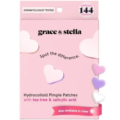 Spot The Difference: Breakout emergency? Zap zits fast with our hydrocolloid acne patches. Clinically proven to flatten spots by absorbing fluid, these hydrocolloid patches penetrate pores to fight acne. Your Whitehead Warriors: Our cute blemish patches come in colorful heart shapes to shield spots from outside nasties and help you avoid skin-picking. They now come in 144 & 216 packs, so you’re always ready for every breakout. Power-Packed Formula: Infused with tea tree oil & salicylic acid, our vegan & cruelty-free spot stickers for face help fight breakouts & prevent future ones. Safe for all skin types, they're suitable for use with your go-to spot cream or acne cream. Loved By Millions: Featured in FabFitFun, Ipsy, & BoxyCharm, and adored by celebrities and beauty influencers, grace & stella is the go-to destination for all things skincare and self-care. Our spot treatment patches are here to transform your skin. 30-Day Feel-Good Policy: We’re all about high-quality, effective skincare that makes “me-time” the best time. If our pimple patches hydrocolloid dots don’t make you feel fab, tell us and we’ll make it right. No hard feelings.