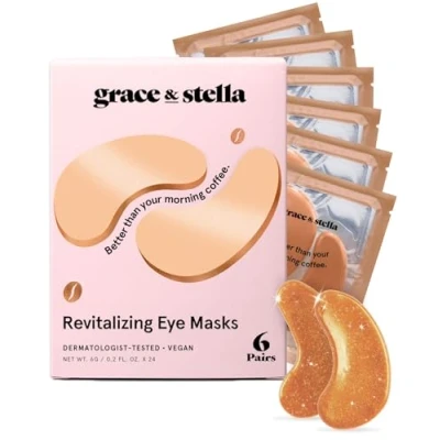 grace & stella Caffeine Under Eye Patches Awakening for Puffy Eyes and Dark Circles Mask with Niacinamide Hyaluronic Acid Vegan, Cruelty Free (Bronze, 6 Pairs)