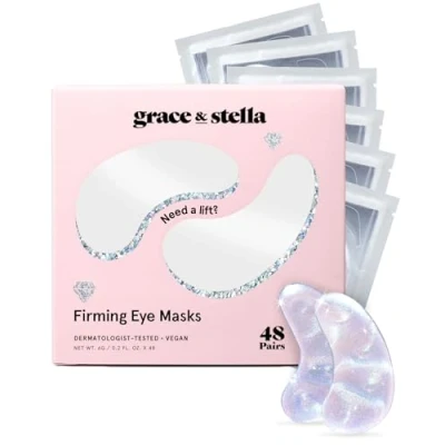 grace & stella Peptide Under Eye Patches with Niacinamide Rice Extract Firming Masks for Dark Circles and Puffiness Gel Mask Firmer Looking Skin Vegan, Cruelty Free (White, 48 Pairs)