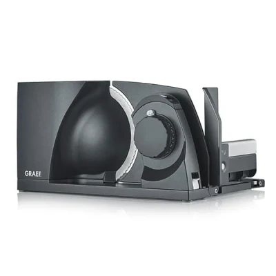 The Graef Mytiny Iron Mica Foldable Slicer is ultra compact in a foldable design which can be placed in a cupboard or drawer for storage when not in use.Perfect for use in a compact kitchen, or even on holiday in a camper van or caravan as it is mobile, foldable and safe.Featuring a solid metal housing with a central control for operation and a folding mechanism. The slicing thickness is adjustable to suit your needs.The slicer function include - Highly efficient 45 W energy-saving motor with 170 W peak cutting power and low operating noise, Automatic child safety lock (switch-on and folding lock), Versatile stainless steel serrated blade, Ø 170 mm, Slicing thickness 0 - 15 mm, Quick-action and continuous operation switch, Swing-out cable winder.Cutting height: 15cm, cutting length: 22.5cm.Complete with a 2 year Graef manufacturers guarantee.Weight: 3.33kg. Dimensions: 18.2(H) x 23.4(W) x 34.5(L)cm.