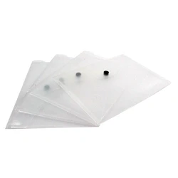 Plastic popper wallets. Press stud fastening closure. Strong and durable. Colour: Clear. Pack of 50.