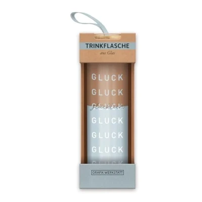 Grafik Werkstatt Glass Drinking Bottle with Funny Saying Handle Loop 550 ml Gluck Happy