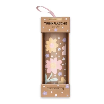 Grafik Werkstatt Glass Water Bottle with Funny Saying Handle Loop 550 ml Flowers