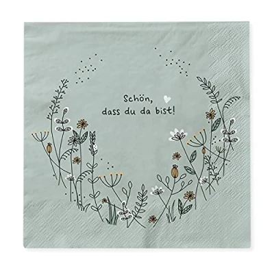 Grafik Werkstatt Napkins with Saying, Pack of 20, 12.5 x cm, Green, Flower Wreath