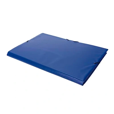 PVC lined cardboard folder with three flaps Extended foliage size Blue Elastic closure Perfect for storing and organizing all kinds of small office, home or school documents