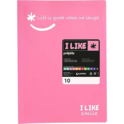 Folder with 10 sleeves welded on the spine Folder made from semi-rigid polypropylene Contains 10 clear polypropylene pockets with orange leather finish. The lids are light pink and the size is folio. These lever arch files are perfect for the proper organization of all kinds of office, school or household documents.