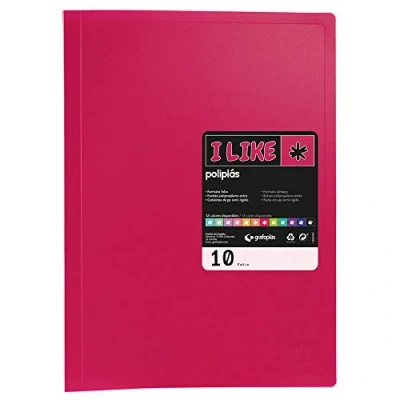 Folder with 10 transparent polypropylene sleeves. Semi-rigid opaque polypropylene cover. Slip-in sleeves are welded on the back Folio format, for folio and A4 format. Colour: fuchsia opaque