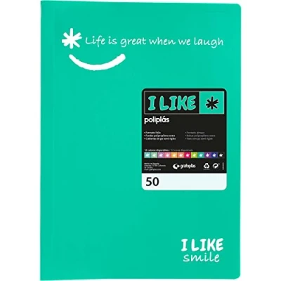 Folder with 50 pockets with welded spine Folder made from semi-rigid polypropylene Contains 50 clear polypropylene pockets with orange leather finish. The lids are turquoise and the size is folio. These lever arch files are perfect for the proper organization of all kinds of office, school or household documents.