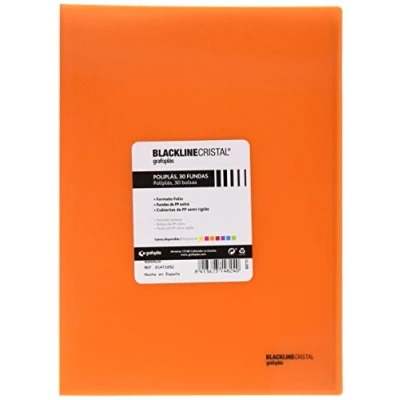 Grafoplás 1471852. Folder 30 Sleeves, Folio Size, Polypropylene Lids, Orange, Blackline Glass Polyplastic