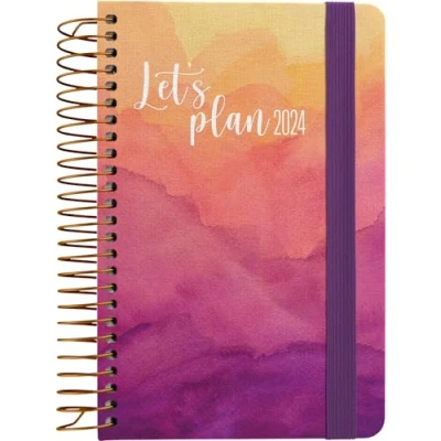 2024 Day to a Page Diary with Passion Design from the Grafoplás "Design" Series of Planners, Hardcover Lined in Printed Fabric in Purple and Orange Tones with Aqueous Texture, Rounded Corners and Metallic Spiral Binding High durability: Made in Spain with fabric-lined rigid cardboard covers with printed design and metallic spiral binding in bronze color Pocket size: This small diary has an a6 size and measures 10.5 x 16.5 cm make it perfect to be able to carry it in any bag or backpack and have it at all times with you. Organization Day Page View: It has a page day organization, each business day has its own page so you can write down everything you need. On the weekend, Saturday and Sunday, they come a single page. Each page has a lined space and a time slot to take notes neatly on the 70g FSC certified white paper with 2-ink printing. Extras for your planning: You have a space for personal identification, three-year calendar, annual planning, list for your contacts, Santoral and titles in box languages: Spanish, Catalan, Galician and Basque.
