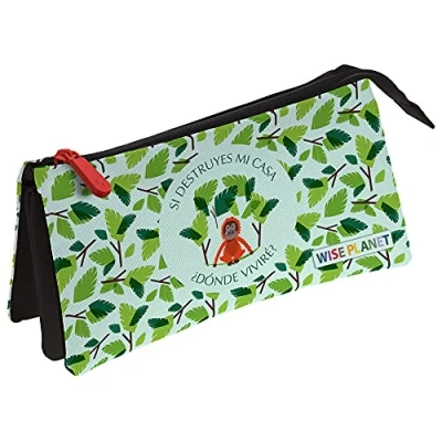 Case dimensions: 23, 5 x 12 x 14 cm. School pencil case with three compartments, 1 outer zip and 1 inside Case shape: rectangular Mono model from the Wise Planet collection. Perfect for organizing your school supplies.