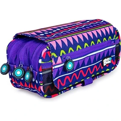 Zigzag 3 Pocket Pencil Case Pencil case dimensions: 23 x 10 x 10 cm Pull the bag on the back to hang on the school bag, desk or locker. With space for your personal ID cards, ideal for school. High strength, with reinforcement ribs on front and back. This pencil case is perfect for organizing all stationery.