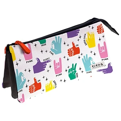 Grafoplás 37546703 School Case Three Compartments, 23.5x12x14 cm, Elena Corredoira Collection, Hands, Multicoloured, 23,5x12x14cm, Motivational