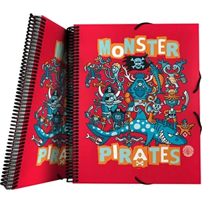 Folder with spiral and elastic elastic closure With 30 clear covers Katuki Saguyaki Monster Pirates Design Includes clear envelope Rigid polypropylene cover