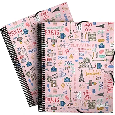 Grafoplás 39822425. A4 Pocket Folder with Spiral, Pluche Collection, Paris, Rigid Polypropylene, Elastic Closure, 30 Transparent Pockets, Includes Envelope Textile Closure