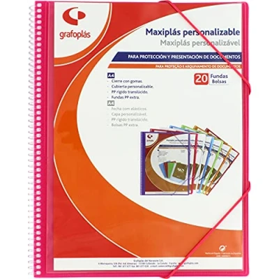 Grafoplás 39842054 Customisable Spiral Folder, 20 Transparent Covers, Fuchsia Pink, 30.8 x 24 14