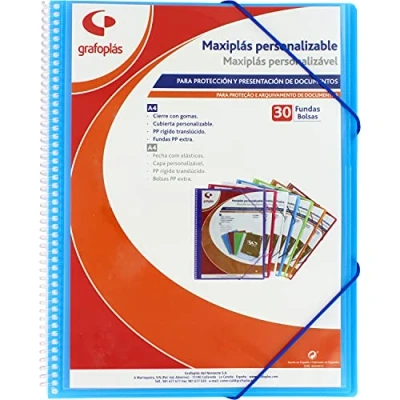 Grafoplás 39843030 Maxiplas Customisable Spiral Binder, 30 Transparent Covers, Blue, 30.8 x 24 14