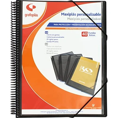 Grafoplás 39844010 Maxiplas Custom Spiral Binder, 40 Covers, Black, 30.8 x 24 20