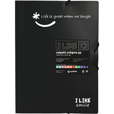 Three flaps folders made of opaque semi-rigid polypropylene. Folder size folio, measures: 243x329 mm. Folders with elastic band closure Semi-rigid black covers Perfect for carrying all kinds of school documents and notes, as well as office or home papers.