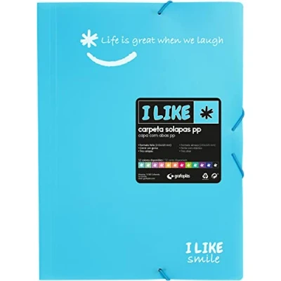 Three flaps folders made of opaque semi-rigid polypropylene. Folder size folio, measures: 243x329 mm. Folders with elastic band closure Light blue semi-rigid covers Perfect for carrying all kinds of school documents and notes, as well as office or home papers.