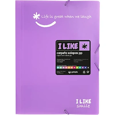 Grafoplás 4800869. School Folder Three Flaps and Rubbers, Lavender Colour, Folio Size, Rubber Closure, Opaque Polypropylene, Like