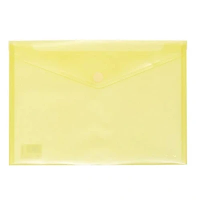 Plastic envelope style folder with adhesive textile closure. Yellow envelope Foolscap Made from translucent polypropylene. This pack contains 12 pieces.