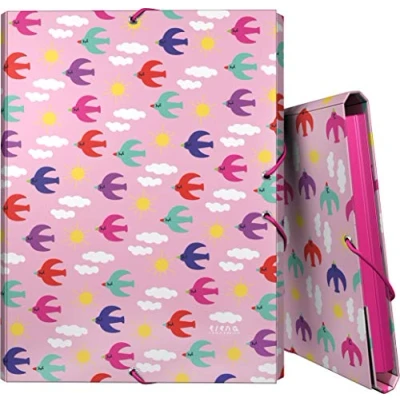 School Folder with 3 Flaps Folio size Elena Corredoira Collection, Birds Elastic closure Cardboard covers lined with FSC paper, certified to ensure that products come from responsible sources