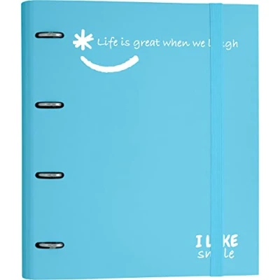 Grafoplás 88101333. 4 Ring Binder Die Cut with Refill, A4, Sky Blue, FSC Paper Lined Cardboard, Including Separators, Carpebook Like Smile